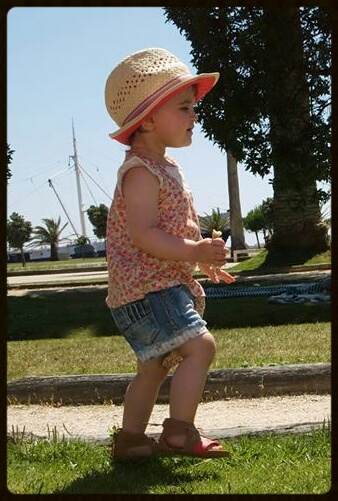 Baby Lara veste: calções e camisa: mayoral/ sandálias: Zippy/ chapéu: H&M