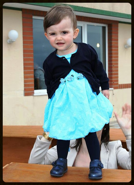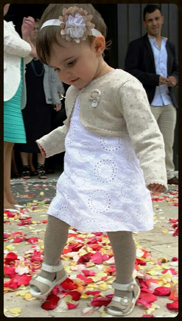 baby Lara veste: vestido e bolero: maioral/ meias: Calzedonia/ sandálias: chicco/ fita do cabelo: mimo feito pela avó