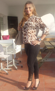 Desta vez eu apostei numa camisa com estampa de girafa, linda! Eu particularmente adorooo! As restante peças foi em preto... Ai meu velho e amigo preto... O que seria de mim se não existisse esta cor...