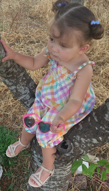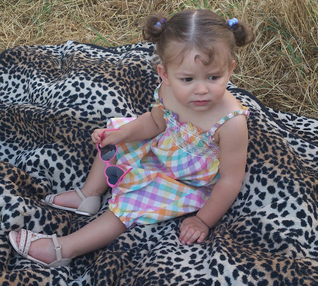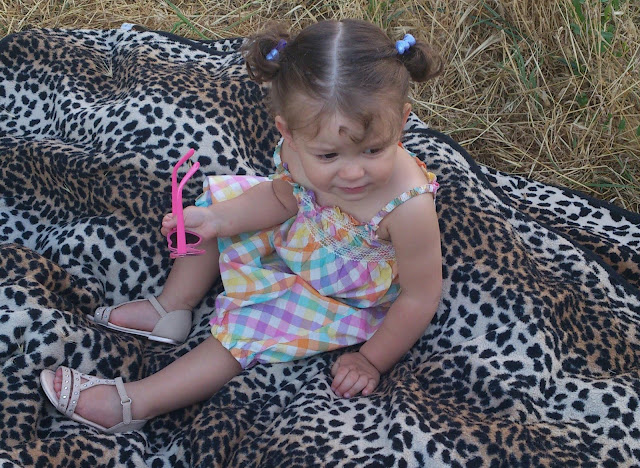 Baby Lara veste: vestido da Kid to Kid: marca ñ identificada/ bolero: Benetton/ óculos: chicco/ chapéu: H&M/ sandálias: zara baby