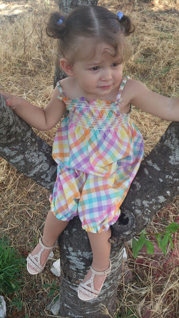 Eu a vesti assim para darmos uma voltinha um dia desses no finalzinho da tarde! Estava muito calor,  então optei por esse macacão saruel coloridinho, leve e fresquinho  e sandalhinhas nude... look bem a cara do verão. Ah! E claro que não podia faltar os óculos de sol e um chapéu todo "estiloso"